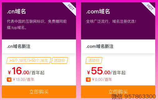 2. 找到自己想要购买的域名类型