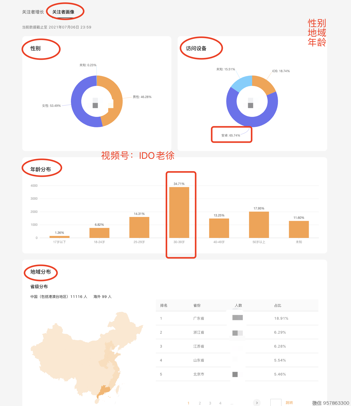 视频号关注用户的性别分布、年龄分布、地域分布(省份分布、城市分布)