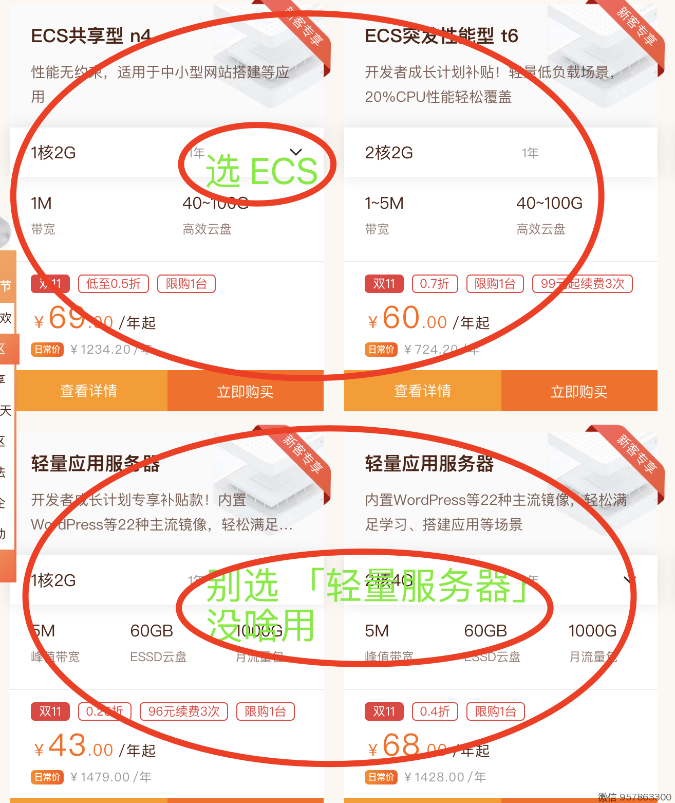 购买入口 -》 点这个选ECS服务器,60/年